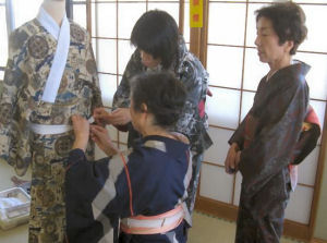 毎月恒例、福岡での着付け教室2日目は大野城市、牛頸公民館ですみなさん、手持ちの着物でそれぞれ学びたいことをお稽古されていらっしゃいます左側の先生のこの日の着物半襟がお花畑で帯留めが、蝶々でした春らしくて素敵ですよね~こちらは、男性紋服のお稽古着付けのお稽古をしたらもちろん、たたみ方のお稽古もしなくてはいけません(^_^;)こちらは、自分で結ぶお太鼓結びのお稽古キレイに着れる様になりましたね~小さい先生も、活躍しました?中学生の生徒さん相手に一緒にお稽古したりモデルになったりしっかり?助手を勤めてくれました~ヽ(^o^)丿