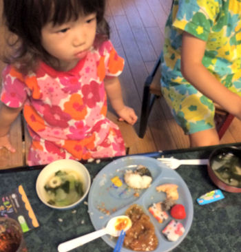 父の初盆にあわせて帰省してくれた弟クン夫婦普段は核家族で夫婦ふたりだけでの子育てお疲れ様ということで・・・この日は、子どもちゃん達をお預かりして二人にはノンビリ旅行に行ってもらいましたで、どこに連れて行こうか?と悩みつつお出かけ公園に行く予定だったのですが雨が降り出したので急遽トイ○ラスに変更さっそくアンパンマンにトラップされるアンパンマンの次はレゴ^_^;うわ~、このままここでおばあちゃんになっちゃうのかしら?くらいの勢いで全く動きません(笑)あああ、子供ってそうだった^_^;っと、うちの子たちが小さかった頃の記憶がよみがえりますでも、そろそろ息子の迎えの時間・・・ということで無理やり撤収~(笑)今度は息子を待っている間に遊んでいた駐車場でこけて怪我する^_^;あああ、子供ってそうだった・・・ということ満載です^_^;息子を連れて家に帰ってからは滑り台で遊んだりお風呂で水遊びしたりして(水鉄砲大活躍!!)無理やり疲れさせて晩御飯を食べさせこの日も息子の読み聞かせで寝てくれました・・・おまけ・・・なんでも食べる姪っ子ちゃん2号食べるかな?と乗っけていた素麺の上の茹で野菜各種ゴーヤもちゃんと食べてくれました!ホント、何でも食べてくれて助かります(笑)