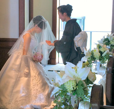 東京在住最終日朝早くから厚木に移動しまして母方のイトコの娘ちゃんの結婚式に行ってきましたもちろんご親族の着付けも担当です!(^^)!花嫁のお母さんにベールを下ろして貰いお父さんにエスコートしてもらって新郎と一緒に歩くバージンロードやっぱり素敵です2人で誓いの言葉を交わし指輪を交換したらベールをあげて誓いのキスそして結婚誓約書にサイン本当に素敵な結婚式でした久しぶりに集まった親戚も大はしゃぎでとても良い式でした先日あったばかりの弟くんと姪っ子ちゃん達にも再会ですえ?もう忘れちゃったの?(ToT)ちなみに、この日の私の取り合わせはこんな感じ夏の結婚式ということでペンギンさん柄の付け下げにペンギンさん柄の夏用袋帯をあわせてみました