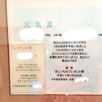 小2で無欠席を達成した時に贈られた