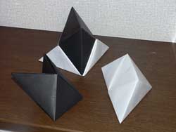 折り紙はユニット折り紙で、黒い方のが6枚、白い方が5枚の折り紙からできています。