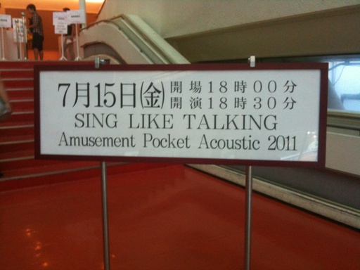 Part1より続く情熱大陸 SPECIAL LIVE '10@夢の島公園 2010/08/07さて待っていました!!本編始まりです!Sing Like Talkingの出番です♪まず、ミュージシャン萌え。ライブの始まりを告げる映像が流れる前から舞台袖に闘魂ドラマー村石さん(Drum)と有賀さん(Bass)の姿が見えていてそれだけでもわくわく。有賀さんのSoloデビューアルバムSherbetって持っていたけど、どこ行ったかな?ん?村石さんと有賀さん?Twitterで松原正樹さんとやることはわかっていたから、情熱AバンドでBassはメッケンさんだと思ってたんだけど。。。映像でSLTが紹介されると、松本さん(Pf)藤井珠緒さん(per)松原正樹さん(Gt)うわ。情熱AバンドBバンド混成だ!!松本さんは最近、宮崎とCYFで一緒にやってたからね。ミュージシャンは竹善さんからのお願いだったのかな?そして千章さん、西村さん、竹善さんがステージに出てきました。ほんとに3人が出てきました。ってあたりまえ?そう。あたりまえになるとうれしいのよね。去年の大阪の時は、あまりに久しぶりすぎて泣けるほどだったけど今年はNew Alubumへの期待感や来年のツアーへの現実感に喜び爆発!って感じでしょうか。竹善さんまた自虐ネタをフリつつ、演奏がうまく行くかどうかはわかりませんから!みたいな事を言いながら始まりました♪Riseこれこれ!って演奏です。村石さんと有賀さんが肝を占めてますからバンド音になってるしね。松原さんと西村さんのギター2本もかっこよかったし千章さんのソロもあり♪なんて実際の所、冷静になんて見てないけどね。曲が終わって、竹善さん「うまく行った?」みたいにきいて、もちろん!!!かっこよかったともさ♪次は葉加瀬さん(Vn)とのコラボと言うことで呼び入れて今年は盟友の柏木さん(Vc)も一緒に演奏してくれると呼び込まれました。「Sing Like Talkingの隠れた名曲。。。…。全部隠れてるとか言わないでくださいね。」って。隠れた名曲?なんだろ?あの曲?それとも。。。と思っているうちに♪止まらぬ想い炎天下の中、初秋の海辺に連れて行かれたような気持ちよさ。微動だにしないで聴き惚れてしまいました。西村さんのアコギも、松本さんのピアノも美しく響いていたし間奏で葉加瀬さんの演奏も美しく、リスペクトにあふれるものでした。柏木さんの響きもいうまでもなくステキで。。。(柏木さんについてはSLTよりファン暦だけは長いのよね。。。)カンカン照りなのに鳥肌がぶぁ~っと。毎年竹善さんにはやられてるなぁ。感動の中、葉加瀬さんが竹善さんとはぐして退場。柏木さんはそのまま。次につい半月前までは歌詞がなかった新曲を歌います。皆さんの反応がよければ新しいアルバムに入ります。♪Wild Flowersさすがにあまり覚えていていないけど聴いている時に、竹善さんの音と千章さんの歌詞だなぁと、しみじみ実感できたのだけは覚えてます。もしかして、Twitterで言っていたチェロラさんがチェロ入れた曲かな?こんなこともTwitterで言ってたねChikuzenSato: バラードの千章の詞があがってきた。深いわ??。ちゃんと歌わねば^?^)たまにつぶやかれるNew Alubumの進行状況を読みながらの今回のLive。ワクワク感が減るどころか待つ心に余裕ができたと言う感じでしょうか。来年が待ち遠しいです。毎年3曲だったのに今年は4曲。最後は♪Lalala去年のクリスマスの約束ですごいコーラスで聴いたときもステキだったけどこの曲はやっぱりフルで聴かなくちゃ。そういえばクリ約のときも有賀さんだったけど、Bassがいいとさらに良い曲だよね。松原さんと西村さんの掛け合いもあったかな。興奮していて覚えてません。あっという間に4曲が終わってしまいましたが来年のツアーがほんとに楽しみに思えるね。ついでに少しTwitter上の呟きをRT。RT @uzysakai シングライクトーキングを観るために、イベント会場に早入りする手筈。2010.08.07 10:55:30RT ChikuzenSato2010.08.07 11:26 まじか?ありがとよ~(^-^)/ 暑いぞ~! @uzysakai シングライクトーキングを観るために、イベント会場に早入りする手筈RT @okanohironori 情熱大陸!シングライクトーキングライブ、カッコイイっす。たまらん。2010.08.07 13:07 RT @gotayashiki Sing like talkingなう。 いい感じ~。2010.08.07 13:11 RT @ChikuzenSato みゃーじしゃんたちにも新曲評判上々~ よかったよかったー!(⌒▽⌒)2010.08.07 14:32 大阪の時はRT @ChikuzenSato @cagie イッたね( ̄ー+ ̄)2010.07.31 19:57RT @cagie @ChikuzenSato イッちゃった。。。 2010.08.01 01:04Part3に続く
