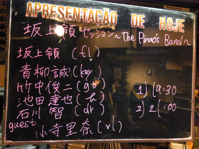 The Pinao's Band@プラッサオンゼ 坂上領/青柳誠/竹中俊二/池田達也/石川智/小寺里奈春先にやっていた松下奈緒さんのバックバンドのみなさんのセッションです。青柳さんのブログや坂上領さんのブログでいつも楽しそうで、旅先でもセッションしている写真とかアップされていて東京でやったら絶対見に行かなくては!!!と思っていたのが実現しました。たつやセッションも一回行かなくてはともくろんでいた池田達也さん♪いいキャラしています。もちろん腕も確か!!坂上さんが昔たつやさんのボーヤをしていたらしく、かわいがられていたようです。雨の白浜七つの分岐点(7拍子の曲)竹中さんはBody & SoulのUstでもお見かけしていて今回楽しみにしていたの。坂上さんのちょっとしたMCの合間にギターで茶々入れしてとっても楽しい方。いつもニコニコしているイメージの方ですね。1曲目にやったSong For Obata という曲はとっても素敵な曲中西俊博さんとやったヨウツベがあったからリンク♪あとRedMoon&Wolf って曲やったかな?今回のリーダー坂上領さんバイオリンの小寺里奈さんを除いて一番年下だけど、諸先輩方をうまく仕切ってご苦労様でした!前にうちの近くの洗足池のレストランで太郎丸さんとDuoライブをやって、それを見に行けなかったのを、ずっと残念に思っていて、今回やっと彼の音を生で聴くことができました。あれ?フルートの音ってこんな音だったっけ?って目から鱗が落ちるほどキラキラした音♪リコーダーも変幻自在に操っていて素敵です。何より、明るいキャラクターで諸先輩方からも愛され、実力もあるから任せられるって感じで、青柳さんからも信頼が厚いみたい。これからもっともっとリーダーとして出てきそうなミュージシャンですね猫空ロープウェイ登山列車と雨男たつやさんと共に雨男様だそうで。。。案の定ライブ終わって帰宅途中土砂降りが。。。。青柳さんは相変わらず、すごいことをサラッとやっているように見せていて。。。たつやさんの7拍子の曲のソロもすごいこと。今回はお店のテイストもブラジル系Drumの石川さんもいることもあって森の中で、青柳さんが作曲したMorning Beansをやってくれました。則さんのカチッとしたドラムともまた違う石川さんのドラムにカチッと曲がはまって素敵だったなもう一曲、渡部陽一さんのCDに収録された曲をアンコールでやってくださったけど何とも壮大な感じでよいですね。青柳さんの曲目的でAmazonをぽちっちゃいました。それにしても年末にかけての青柳さんのスケジュール凄すぎ。この次の日に森山直太朗くんのツアー初日があって、途中から柴淳のツアーが入ってきてそれも、土曜日直太朗くん、日曜柴淳みたいな。。。超売れっ子バンマスですねライブ終了後、石川さんに少しだけ話しかけさしてもらいました。今日のライブは初見でやるには難しすぎる曲だったので、MCに参加できなかったっておっしゃられてたまたこのメンバーでライブやらないかな♪楽しみです。