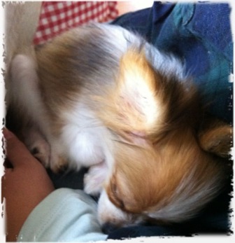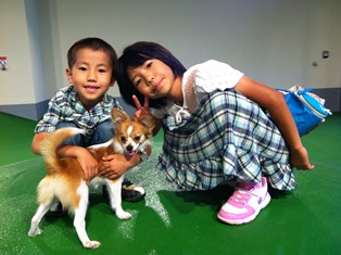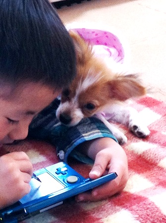 14日は一日中雨が降っていましたが、SenyaSの10歳の誕生日。産まれた日のことが昨日のことのように...とは思いませんが、実はHaryaSよりも生まれた瞬間のことをハッキリ覚えています。初めての出産だったからかな?あれから10年も経ったなんて、まったく信じられません。成人まで半分のところまできてしまいました。この調子だと二十歳なんてあっという間だなぁ~。本人はそんな風には感じないでしょうけどねっ。さて、お誕生日当日は主役であるSenyaSの希望でカラオケに行きました。ドッグカフェに行ってのんびり食事してからカラオケに行くことにしました。カラオケは「ワンダフルルーム」と言ってワンコ連れで使えるお部屋が用意されているシダックス♪まずはドッグカフェ『Smily Smile』。とっても元気なオーナーさんと、お隣にある動物病院の先生と、常連さんらしく、パピヨンちゃんと猫ちゃんを飼っていらっしゃる方にお会いしました。どうやらその常連さんは、Pippiと同じマダムパピヨン出身のお友達をご存じのようで「どうりでお顔が似てると思ったぁ~♪」とおっしゃっていました。さて、この日はSenyaSが主役の日だというのに、オーダーの時にHaryaSだけランチメニューに入っていない、追加料金が必要なドリンクを注文!!QunieSが文句を言ったら、そのドリンクもランチメニューと同じ料金におまけしてくれちゃいました。更に、お店を出る時にはSenyaSに可愛いメモ帳をプレゼントして下さり...至れり尽くせりのサービスを受けてしまいました。Pippiの写真を撮ってくれて、お店に貼り出してくれたのですが、次回お店に行ったらその写真も下さるとのこと...。スバラシイ!!甘噛みをやめさせる方法などのアドバイスを、獣医師さんから頂けたり、とっても良いカフェです。大きな公園のすぐ近くなので、今度は天気の良い日に遊びに行って、帰りに寄りたいと思いました。カラオケはもちろんPippiは初めて。大きな音の中にいたらつらいかなぁと思ったのですが、全く動じることなく、ちゃんとサークル内のトイレシーツの上で排泄して、最後には寝てしまいました...。2時間みっちり歌って大満足♪ヒートアップした子供達はソファの上に立ち上がり、踊りながら歌っていました。せっかく10歳という節目のお誕生日だというのに、雨だしトイザラスがなくなっているし、バタバタでしたが、SenyaSは「すっごく楽しかったぁ~♪」と喜んでくれました。15日はとても良いお天気でした。お昼前にPippiが初めて外を歩いた公園に遊びに行きました。芝生をプラプラしていたら、HaryaSのお友達に遭遇。子亀を見つけたということで、見せてもらいました。HaryaSはたぶん亀に触るのは初めてだと思うのですが、平気でつまんでいました。そしてなんと池にはたっくさんの亀がいて、岸では甲羅干しをしている軍団がいたのです。「このどれかがこの亀の親なんだねぇ~」と子供達が話していました。QunieSが子供会の引き継ぎ会議のために途中で抜けたのですが、HaryaSは亀の研究に夢中で、QunieSには見向きもしませんでした。会議の間にPippiと子供達とMacSは、往復で1時間ほどの道のりを歩いてお昼を食べに行ったそうです。途中で休んだとは言え、歩かせ過ぎです~っ!この日はQunieSが再び合流した後、Pippiのシャンプーや爪切り、肛門絞りなどをお願いしようとペットサロンに行ったのですが、予約が埋まっていて断念。それからアウトレットに行ったりと、引き続きお出かけしました。Pippiは車に乗っている間は殆どグッスリ寝ていました。お疲れなんですねぇ。可哀相に...。だけど、家に帰るまでに沢山寝たからか、すっかりパワーアップしてまた遊んでいました。よかった。さて、土日にみっちり遊びほうけたSenyaSは、夜になってアタマが痛いなどと言いだし、今朝は微熱が出ていました。午後には熱が下がってすっかり元気になりましたが、相変わらず元気でお散歩だけでは足りなそうなPippiではなく、滅多に風邪をひかないSenyaSがダウンするとは...ビックリでした。