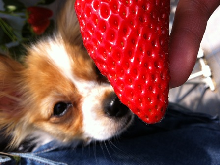 山梨の笛吹市にあるこまざわフルーツファームにイチゴ狩りに行きました。予め調べて、予約の連絡の際にも犬連れで行くと伝えてありました。ここはドッグランもあって、ワンコもハウス内に入れるんです。最近はやりの高設栽培だからかな?まずは早朝にQunieSの実家まで行って両親をピックアブして、そこから高速に乗ります。談合坂SAには確かドッグランがあったはず! ということで、休憩はそこにしました。Pippiの初ドッグランです。QunieSが買い物をしている間に、MacSと子供達が連れて行って、何の不安もなくリードを外したそうですが、コンパクトな上にウッドチップに慣れないためあまり動かず、更に他のワンちゃんが小型犬エリアにはいなかったから大丈夫でした。隣の大型犬エリアにいる子と網越しに鼻をくっつけてご挨拶したり、少しは楽しめたようです。せっかくワンちゃんのトイレコーナーもあったのに、Pippiはそこでは何もせず、あまりにトイレの間隔が開いたのでちょっと心配になるくらいでした。SAを出てからはまっすぐにイチゴ農園に向かいました。そこは1時間も食べ放題で他と同じ料金という素晴らしい価格設定でしたが、30分も食べたらお腹いっぱいです。Pippiにもほんの一かけら、お口汚し程度におすそ分け。すぐにドッグランに。ここもコンパクトだし誰も他にいなかったので、のんびりリードなしで探検していました。そして、いよいよ子供達が楽しみにしているピクニックに...車で移動して同じ笛吹市にあるフルーツパークへ!!ここは山梨に行くと必ずと言って良いくらい立ち寄る公園です。傾斜があるけど広い芝生と、水が流れる小さなアスレチック遊具があったりするのです。ここで毎回ピクニックをして、その山の上にあるほったらかし温泉に行くのです。小さな男の子に執拗に追い回されて、挙げ句の果てに足を踏まれて嫌気が差していましたけど...。そこでようやく排泄ができました。Pippi初のお外での、いわゆる「野○ソ」ってやつです。これができるようにならないと、長時間のお出かけが難しくなりますからねぇ。ここでもPippiは沢山歩きました。最後は座り込んで「歩けない」アピール?!これでクタクタになったPippiは、この後の温泉の間、車でグーグー寝ていました。このところ暖かかったのに、急に冷え込んだ日だったので車でお留守番してもらえて良かった♪これから暑くなったらそれができないから、ちょっと面倒だなぁ~。家族で順番に入ることになりますね。帰りはみんな爆睡だったので、ノンストップで実家まで戻りました。Pippiにとって初のQunieSの実家にお邪魔です。携帯用のトイレを置いてやったら、ちゃんとそこでやってくれて大助かりです。あまり吠えないので、犬猫の飼育が禁止のマンションでも連れてお泊りできちゃうかも♪飼っているワケじゃなくて遊びに行くだけだから、大目に見てくれるだろうと...。Pippiはお出かけ大好きな我が家にピッタリの性格で一安心です。