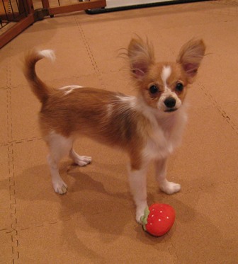 29日(肉の日)産まれのPippiは今日で5カ月になりました。ずいぶん大きくなり、本当は阻止しなければいけないのですが、ソファに飛び乗ったり飛び降りたりを繰り返します...。「お座り」ができるようになりました。暫く「待て」もできます。でも、甘噛みとワンちゃんの声に反応して吠えるクセが治りません~(汗)そして、ついに笑顔が撮れました!!!ちょっとピントが甘いのが残念...これは昨日、家族が1日ホビーショーに出かけてお留守番していたのでさびしかっのか、帰宅後遊んでいたら舌を出して笑った顔をしてオモチャを投げるのをワクワクして待っていたのです♪嬉しい~っ!Pippiには可哀相だけど、1日お預けにして遊んであげたのが良かったのかな?と思っちゃいました~。あまり沢山エサを食べないのでスリムだとかあまり大きくなっていないと言われますが、怪我や病気がなければいいやと思います。この調子で元気に楽しく過ごして成長してくれたらなぁ~と思います。