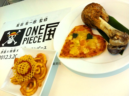 六本木ヒルズで開催されている尾田栄一郎監修 ONEPIECE展~原画×映像×体感に行って来ました。平日とは言え春休み、きっとすごく混んでいるんだろうと覚悟していましたが、行ってみて気が付きました。今回のワンピース展は、原画が多く展示されているし、映像も原画をもとに作られているので、文字をちゃんと読めない小さな子供には不向きだったのですねぇ。それでも映像や扉絵や、尾田先生の作業デスクを模した展示はHaryaSも興味を持って見ていましたけど。原画の部分はつまらなそうでした。手配書が沢山貼ってある所では、QunieSよりも子供達の方がキャラクターの名前など良く知っていて驚きました。TVで見ていただけなんですけどねぇ。QunieSはと言えば...マリンフォード頂上決戦のシーンの映像で涙が出そうでした。本当に泣いている親子もいたくらい、ただ漫画をつないだだけのような映像なのに、すごく感動してしまいます。そして最後にお預けにしていたランチを上のレストランで食べました。ワンピースにちなんだメニューでした。そのメニューのネーミングも楽しく、『ルフィの好きな骨付きの肉のやつ』みたいな感じでした。これはひょっとすると、以前ランドマークプラザで開催されていたイベントの時と同じようなメニューかも知れません。あの時に食べられなかったので今回食べれて嬉しかったです♪