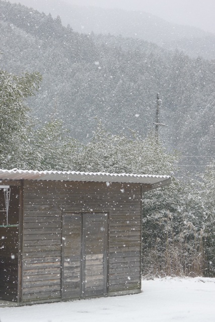 今朝は雪でしたね。丁度2年ほど前も雪が降り続き、約丸一日停電しましたが、この時期の雪は根雪になることもなく、儚く消えていきます。この景色ももう最後かな。