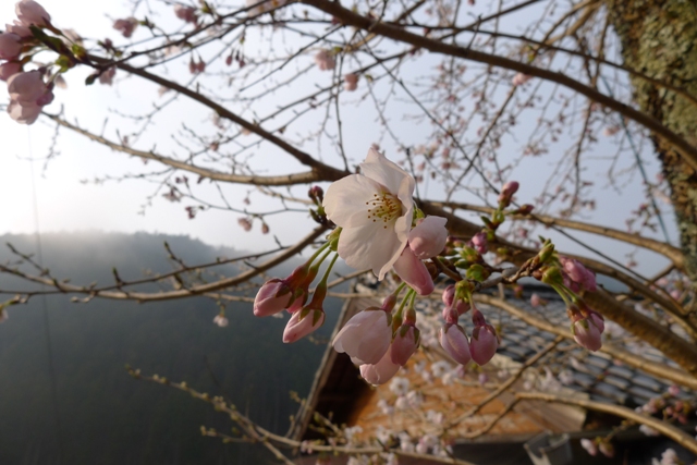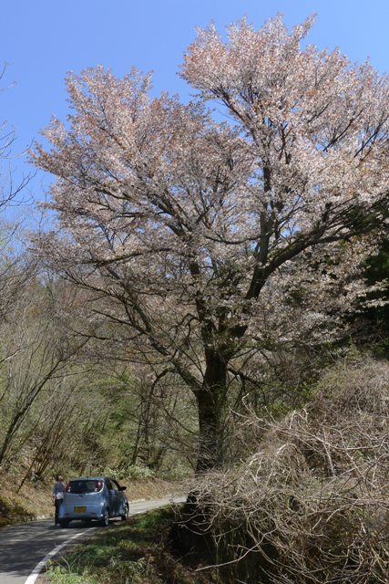 GWにはいり、世間はお休みムードですが、意外とこの町の住人は田んぼ仕事に追われていることが多い、ことさら兼業農家にとっては貴重な田んぼ仕事の時間になっているようです。いうまでもなく、私も田植え準備に、トマトの定植準備に忙しい、、、ただ忙殺されていくだけの時間を過ごすのはとても勿体無いですね。あの木に会いたくて、行って来ました。もう一昨日のことになりますが、雲ひとつない晴れ、農家の特権、自営業の特権を生かしてひとっ走り時間を作りました、あの木は花を咲かして待っててくれました。山桜の古木、咲いている時期にいくとさぞ綺麗だろうと想像していたんですが、期待を裏切らない景色がありました。多少、満開は過ぎたかな、でもよく今年の春風に耐えたもんだ、樹齢どれぐらいかな、少々標高が高いところにあるけど、ソメイヨシノの開花宣言は東北あたりということは、東北より暖かいのかなといろいろ考えてまあぼんやり眺めていました。ただまだ花のすくない山の中にあり、この木はかなりのクマバチを養っていまして、あたりに羽音が鳴り響いていました、まず人を刺すことはないのですが、迫力ありました。帰りにはジグマが飛び出してきて危うく獣身事故になりそうでしたが、自然を満喫して少し早めのプチGWを過ごしました。この町にはある時期がくると会いたくなる木があります、来年またお会いしましょう。
