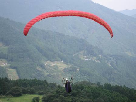 台風が去って急速に秋が増してきた。朝起きるとヒンヤリとした空気が包む、朝霧も入るようになって朝太陽の光に霧は空気へと昇華していく。この日も太陽の上昇とともに霧が晴れ、暖かい空気に包まれはじめる。霧が晴れると空にはうろこ雲がみえてきた。青く澄んだ空にぷかぷかと浮かべれたらどんなに気持ちがいいだろう、、、飛べない人間は空に思いを馳せたことだろう。今は、翼を広げれば、とても器用とはいえないが飛ぶことができる。そこにある風は、そこにいるものしか感じられない。そして地球の息吹を感じ、一体となる。気持ちいいんだな、これが、、、カ・イ・カ・ン。