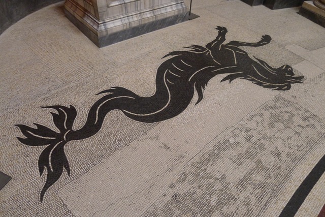 イタリアで見つけた不思議な生き物。馬に尾びれが生えています。イタリアで有名な博物館の床、床のモザイクがあまりに面白かった、綺麗だったので、美術品よりこちらをみていたりしました。なんと、こちらは場所を変えてイタリアの広場の噴水、やっぱり馬に尾びれが生えている、結構メジャーな生き物なんですかね。どこに生息しているんだろう、人魚みたいに水中を泳ぐにも不便そうである、持論だが、前足は水面を掻いて、尾びれは水中をばたつかせるのだろう、そう考えると、これは水中翼船のモデルになった生き物ではないかと哲学してみたり、太古の人は想像力豊かだなと変に感心してみたり、まっ、オモロイです。