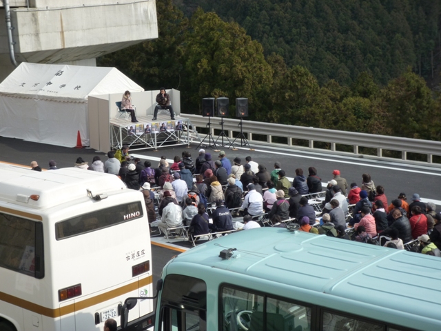 ヒロシです。遠目からでもオーラがでています。ヒロシです。髪型が期待した通りです。ヒロシです。ガバーと開いた足が男らしいです。そんな藤岡弘さんが三坂道路の開通イベントにいらしていました。なんとも普遍な雰囲気をもった方ですね。さて、イベントの方は、寒い中でしたが、雨が降ることもなく無事終わり、手土産にいただいたお餅もおいしくいただきました。いつぞや教えてもらった大根おろし和え、合いますね。これはさらに、ゴマとゴマ油がはいってます。