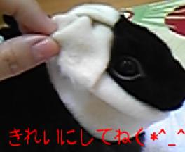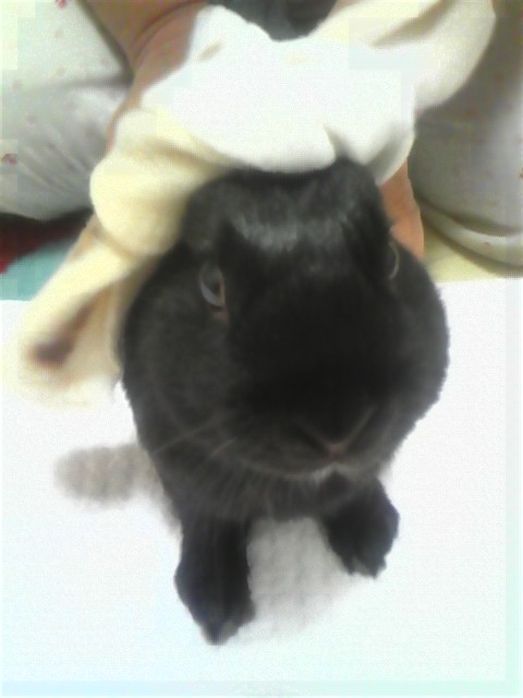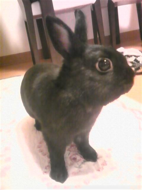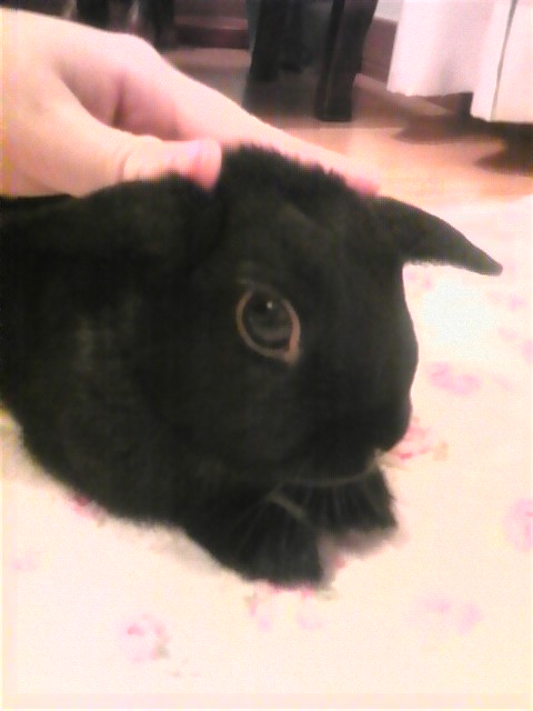 昨日きなこをお部屋で遊ばせていたらきなちゃんに手を舐められた。何て可愛いのきなこ(親ばか)最近太ったきなこはダイエット中。ご飯入れには何も入ってないのに顔を突っ込んでご飯を探してる。夜8時頃が夜ご飯だけど12時頃には完売!最近顔が丸くなったと思ったんだ。。親子でおデブになってしまった~きなこはエンセファリトゾーンと言う病気で片目の黒目の部分が白内障になっているんです。一生治らないけど月1回病院へ行って見てもらっています。最初聞いた時は病院で泣きました。。でもきなこが頑張っているのに私がしっかりしなければと気持ちを切り替えました。先生もすごく良い先生なんです。珍しくうさちゃんの患者さん多いんですよ毎日目薬も欠かさない。結構大変なんですよ目薬。目の淵に目薬を乗せて目の上下の皮を一気に引っ張りま~す。同じ病気のうさちゃんいますか??お話聞きたいです。昨日に引き続き今日もイラストレーターさんとお店のロゴマークについて何度もメール交換をしました。もちろんうさぎマークです☆出来ましたら見て下さいね!