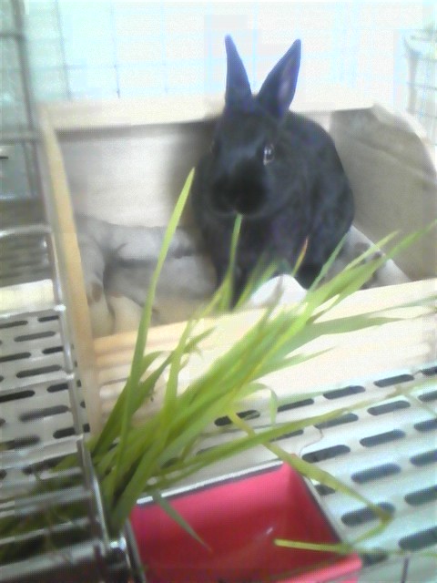 大変ご無沙汰しています。皆様お元気でしょうか?きなこはエンセファリトゾーンの影響でもう片方のお目めにも目に見えないくらいですが影響が出てきてしまいました。でもちゃんと見えているようでとっても元気に暮らしています。この前うさフェスタに行ってきました。皆可愛い子ばかりできなたんに怒られてしまうけどついデレデレしてしまいました~下の写真は私が可愛いな~って思った子です。そして最近野良ちゃんですがたまちゃんという女の子の猫を玄関の外で飼い始めました。すっかり居ついてしまったので犬用のお家やベッドなど準備してあげたら毎日帰ってくるようになってすっかりうちの子です^^;明日は避妊手術を受けさせる為に病院に連れていきます。お家の中では飼えないので可哀そうな野良ちゃんが増えない為にも可哀そうだけど手術をしてもらうことに決めました。きなたんもお家を新築にして3年以上使ったお家と別れを告げました。今のお家気に入ってくれているようです。良かった~前に気に入らなくって使ってくれなかったことがあったんですよ。皆さんのう~さんも元気にしていますか?寒くなってきたので気をつけましょうねちなみにきなこは換毛が始まりました(;一_一)