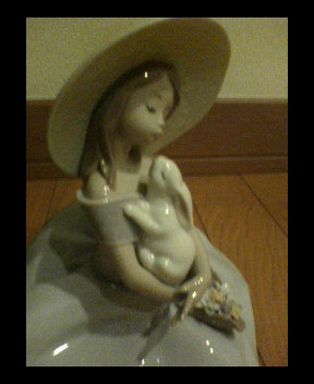 今パック中で顔がこわばっていますこのパック優れもので中国に帰った時にあちらの兄嫁の勧めで買ったんです。バラの成分の入っている粉と化粧水をまぜまぜしてパックするんですよ。中国に帰るとすっごく楽しくて私の場合中国語は単語程度でかなり怪しいんですけど皆一生懸命聞いてくれます。帰りたいけどお店を始めたばかりなのでしばらく無理かな・・。今日は私のうさグッズの一部をご紹介します以前の仕事柄陶磁器のお人形を何点か持っていますがその中でもうさちゃんとチュ~してるのはお気に入りです