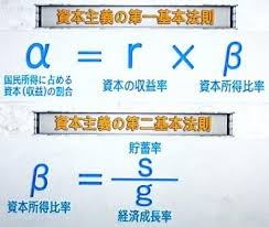 ★ 以下は、脳幹梗塞の呆けの独り言とご放念願いたい。・///・///・ アベノミクスでお金が余り、そのお金で儲けるのは株式投資家、や資産家であろうから、ピケティ氏が言うように「格差が拡大する」であろう。 アベノミクスでは年金生活者(小生)はインフレで苦しむだけである。 ・・・ β=K/Y=s/g ・・・(2) 第2方程式を展開する: これには、長期安定性の仮定が存在している。 呆けには、貯蓄率(s)=S/Y=I/Y経済成長率(g)=△Y/Ys/g =(S/Y)/(△Y/Y)=(I/Y)/△Y/Y=I/△Y長期的には(Σ I)/(Σ△Y)→K/Y ということなのだろうか? 呆けにはそう見えるのだが・・・第1方程式の恒等式に代入する。 α=r*β・・・(1) α= Q/Y=(Q/K)*(K/Y)=r*β=r*(s/g) α*g=s*r r=(α/s) *gのような式が導かれる。 (α/s)=γ とする。 γ = (「所得の資本分配率」/「貯蓄率」) 「資本収益率」=(「所得の資本分配率」/「貯蓄率」)*「成長率」は「資本収益率」=γ*「成長率」 と書かれる。 r=γ *g γ が =1、>1、<1かは r=g ,r>g ,r<g と同じ意味になる。 「所得の資本分配率」=「貯蓄率」のケースはr=g、 「所得の資本分配率」>「貯蓄率」のケースはr>g、「所得の資本分配率」<「貯蓄率」 のケースはr<gである。間違っていたらごめんなさい。(なにぶん、脳幹梗塞です。) ・・・///・・・( )の中は、もしかするとソローの成長モデルに対応しないか。 K:資本ストック、L:労働投入、A:技術水準、 パラメーター:資本分配率 <コブ・ダグラス生産関数型の経済成長モデルの参照資料; http://www.sangiin.go.jp/japanese/annai/chousa/ keizai_prism/backnumber/h26pdf/201412402.pdf>///・・・/// 「所得の資本分配率」が「貯蓄率」と等しいか、 「所得の資本分配率」が「貯蓄率」より大きいかに相当しないだろうか。 ///// 等しいときには、一人当たり消費は最大になり、貯蓄率は0.2~0.5と考えられる。 ///// ソローモデルは理論的な長期成長モデルの説明であり、ピケティ理論は超長期の趨勢から資本主義の長期的な性格を説明しているようだ。ピケティ理論には第二次世界大戦の時期(戦後を含む)のような異常な時期を観察対象外とすべき理由があることを理解すべきであろう。 この時期に、敢えて適用しようとしたのは、資本家に、成長こそ平等の近道という、都合の良い考えが有ったからであると思う。しかし、ピケティ理論のいうように、(戦争などがなければ)資本家には分配率は有利に働くのである。 ・・・ 呆け頭だから、くどくなるが、 「所得の資本分配率」、「貯蓄率」が安定しているときはこの関係も認められよう。 しかし、戦争などのあとは不安定であり、第二次世界大戦前後には通用しない理論であろう。戦争で多くの資本財が灰燼に帰し、他方で蓄えもなくなり、消費性向が高まるしかない特殊な時期だからである。 だからピケティ理論を不安定な時代に持ち込むのには理論上の無理があり、其れを除いた時代に適用すべきであろう。 ピケティ理論が、大戦終了時を除いて、資本主義を説明できているのではなかろうか。 ★しかしながら、国の年金制度を維持するためには若者の賃金は上げて貰わなくてはならない。企業が儲かるように制度を改めて、企業家精神を高めるように企業側税率を低くし、企業に頑張って貰い、稼いだお金のなかの、内部留保に回すのをちょっとだけでも従業員の分配に気を遣って貰いたいものである。★小生は残業を厭わない、持ち帰り残業もしたほうであるが、今後は目に見えるような利益貢献が会社には必要であるという。ますます世知辛い世の中になったものである。惚け老人は、今の世の中では邪魔物でしかないであろう。★小生が若者として生きた時代は、窮乏した戦後世界からの高度成長の時代であった。そこには完全雇用の黄金条件の成長が期待されていずれは金利、利益率がゼロに近づくStational State な世界があり、平等がもたらされて、技術革新だけがその幸せを上方にシフトさせるという「桃源郷的感覚」を感じていた。呆け頭の錯覚である。 ★今は、高度成長(過去には所得倍増計画もあった)時代でなく、せいぜいで安定低成長の時代である。ピケティ理論の言うように、株式投資家・資産家が儲けを増やし、労働者ががんばっても分配率面では追いつかない時代となった。金持ちは、ピケティ理論を打ち消そうとしているが、どっこい、政治・経済が安定すればするほど明らかになって来るであろう。優秀な人間ほど、労働で汗を流さずに、頭脳で稼ぐようになる。優秀な人間が、TVタレントに多くいるのもその一つの例かも知れない。(世知辛い世の中に対応できない、引きこもりがちな若者達が、Virtualな「宗教」戦争に集まるのも困ったものである。) ミセスワタナベのような為替トレーダーがもてはやされるのでは、製造業で外貨を稼いだ時代は去ってしまったのかも。 呆けにはそう思える。★ 呆けには、日本の場合は、資本の分配率も気になるが、貯蓄率が著しく低下しているような気がして心配である。 ★