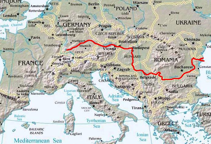 < ドナウ川の流れ 赤い線