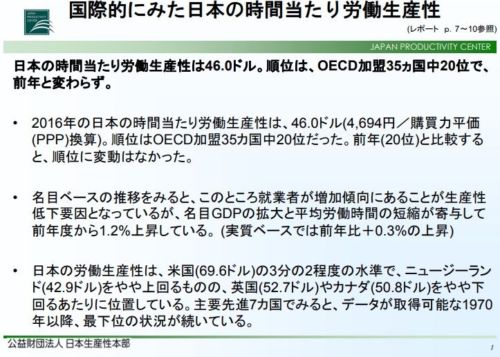 勤勉さによる本来の国際競争力が失われる素地が見え始めている。