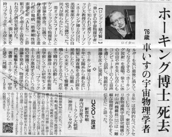 ​ 宇宙物理学者 スティーヴン・ホーキング博士