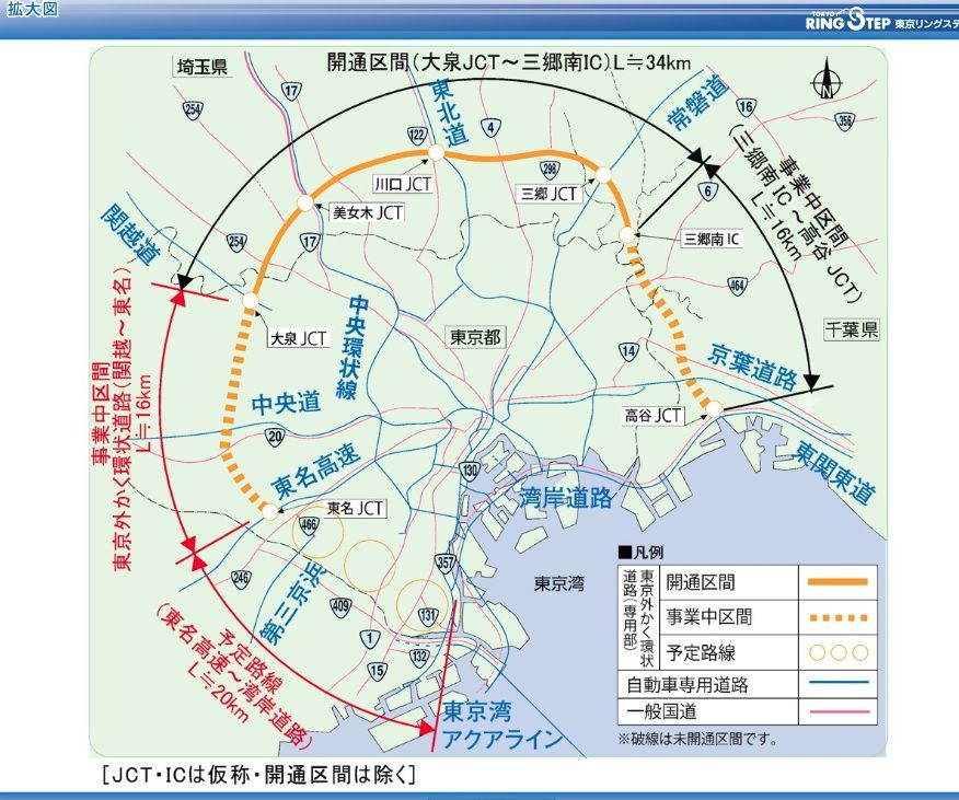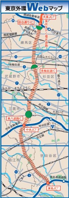 関越道大泉JCT~ 世田谷区 の東名JCT間があります。