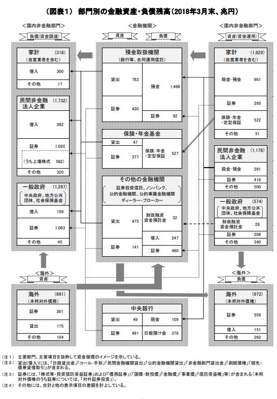 ​​ ​​​​日銀から2018.3末の日本の資金循環表が発表された。