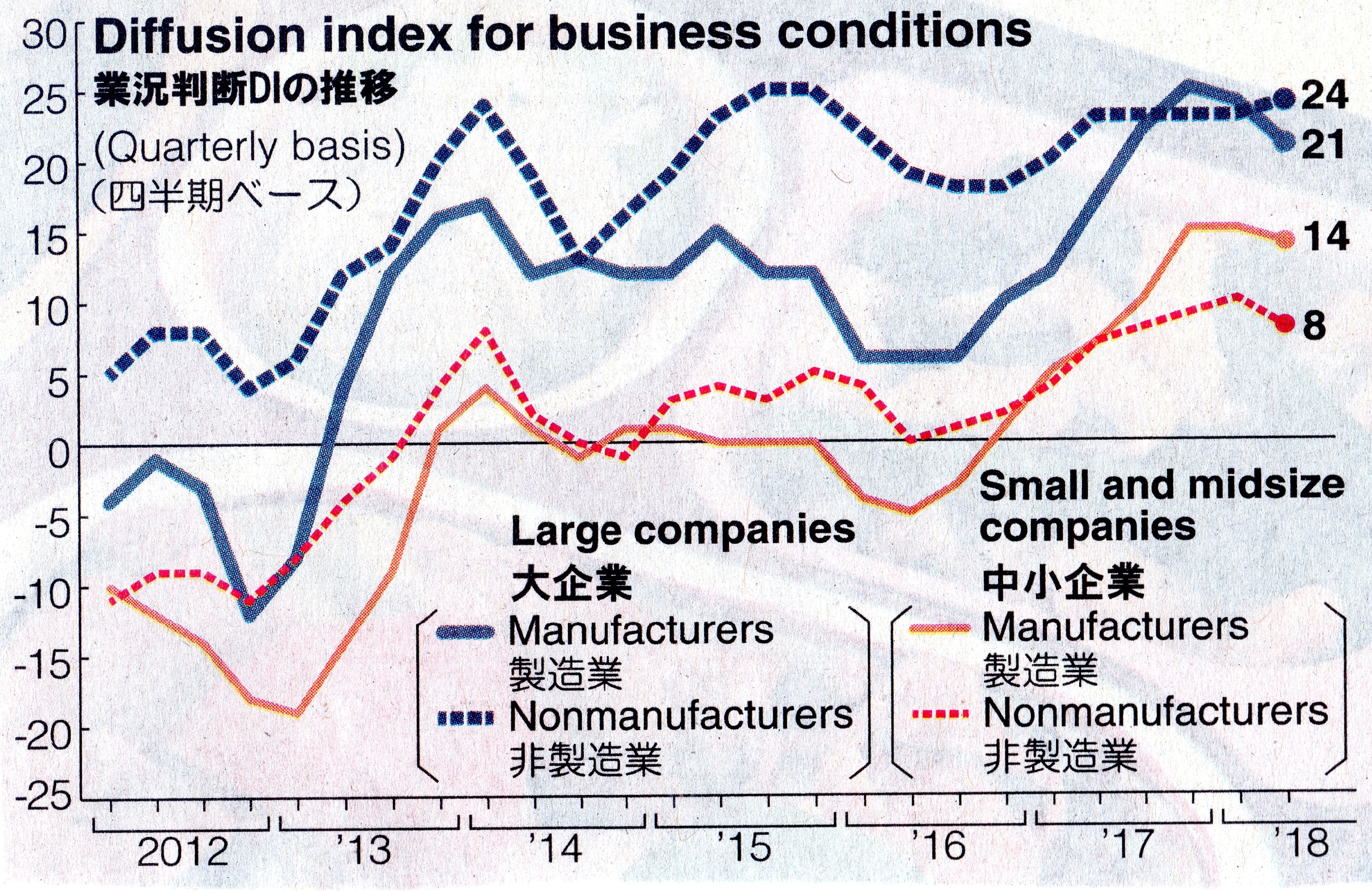 補完:最近の日銀短観の業況判断DIの推移