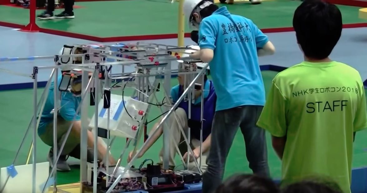 (「NHK 学生ロボコン2018」で、対東大との決勝に挑む豊技大