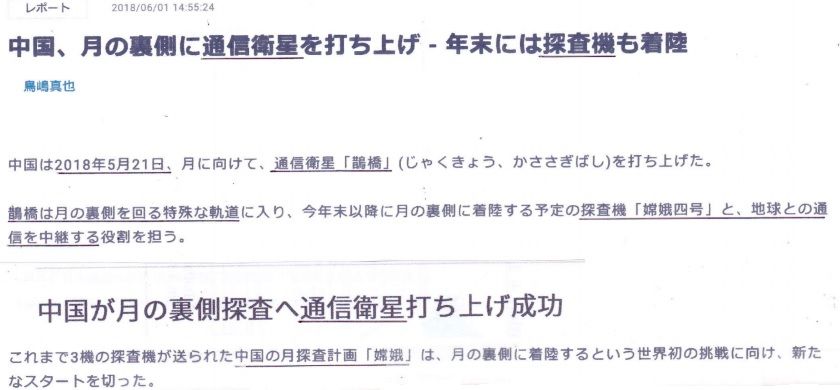通信衛星「鵲橋(ジャクキョウ=かささぎ)」を放出、