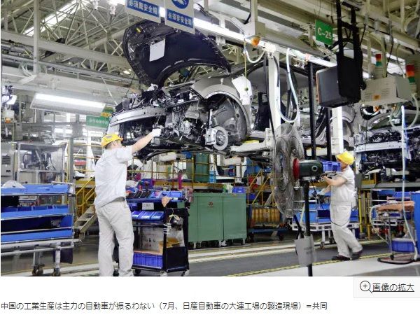 中国の工業生産は主力の自動車が振るわない