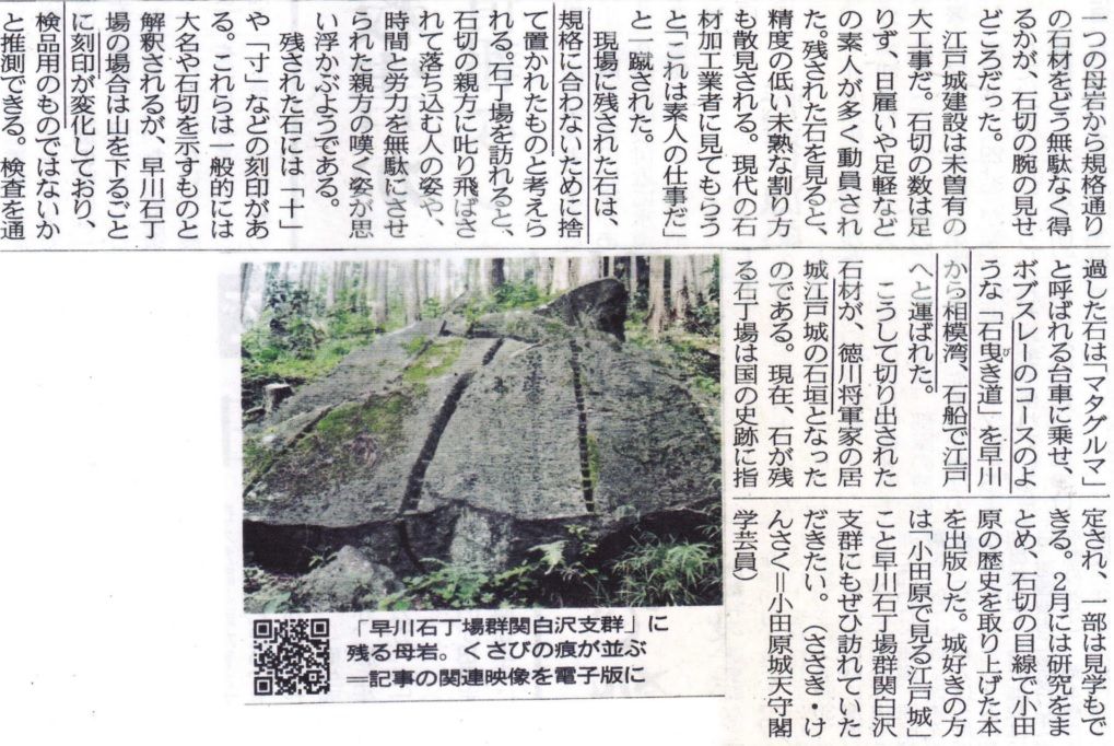 をみて、石切を江戸城の築城に徴用したとのこと。