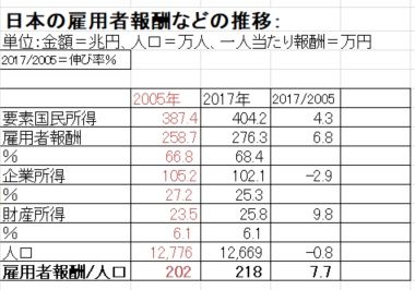 GDPに占める雇用者報酬の比率(労働分配率?)は