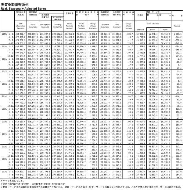 季節調整系列は名目、実質ともに1994年1-3月期まで