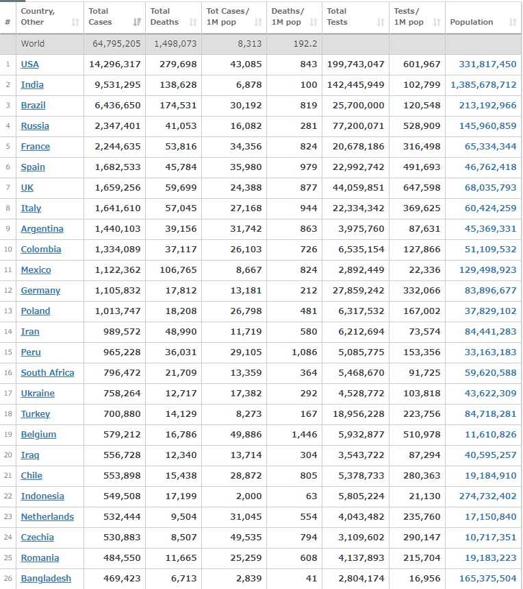 ​​ 世界と米国と日本のCOVID情報