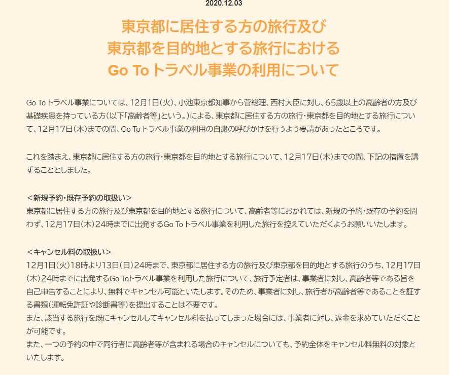 「東京発着の自粛」の文字もなし>