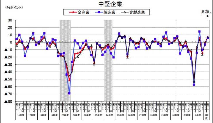 上昇機運は大企業~中堅企業が7~9月期以降か。