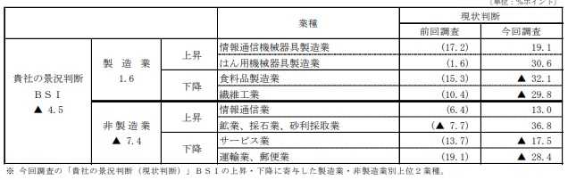 大企業でも▲4.5%、昨年4~6月期以来の3期ぶりの