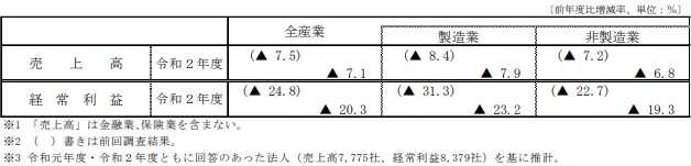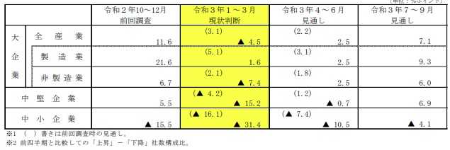 ​​​  法人企業景気予測調査 (2021年1~3月期)が