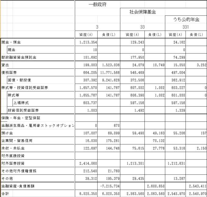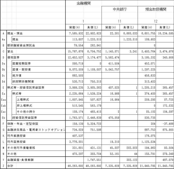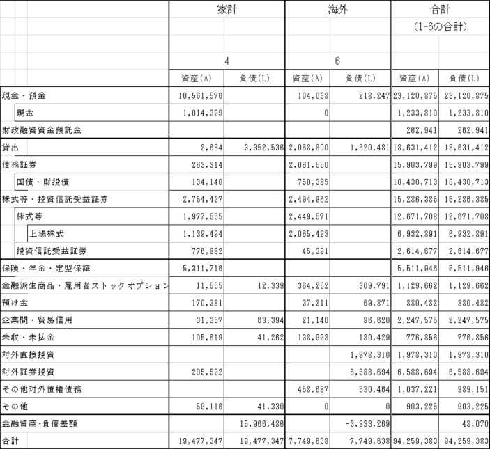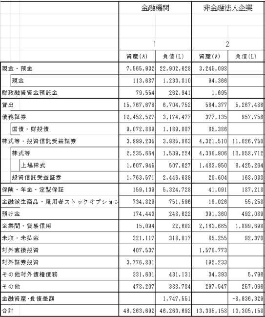 (以下も「日本の資金循環表」の残高表