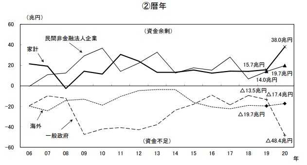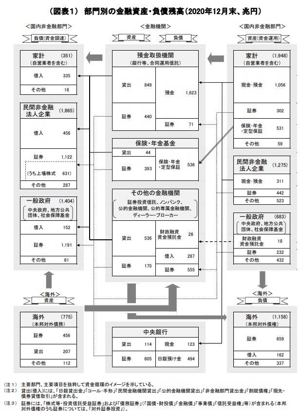 日本銀行から2020年末の 「資金循環表」 が公表された。