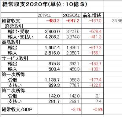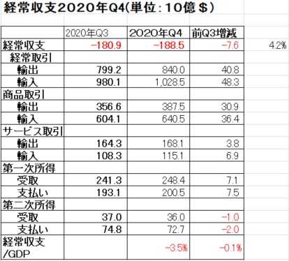 ​​​​​​​​米国経常収支 2020年 および Q4 が公表された。