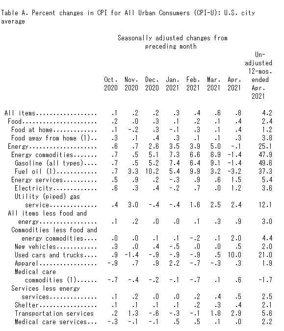 2021年4月の前年同月比で全商品の物価は+4.2%