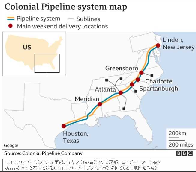 BBCニュースのコロニアルパイプラインのシステム図