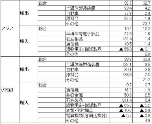 貿易統計では「アジア」とその「うち中国」の仕訳であるので