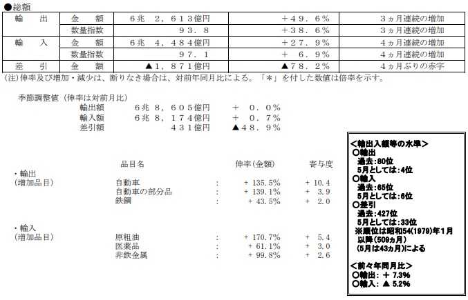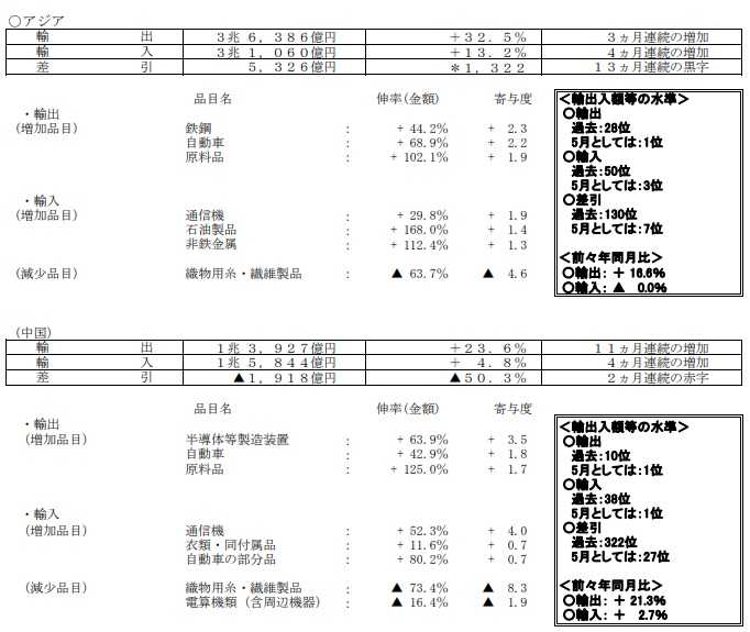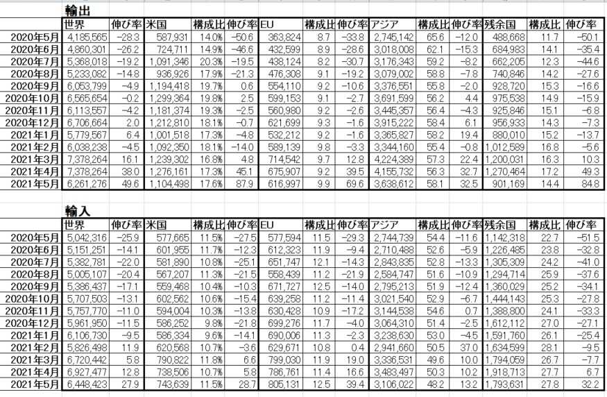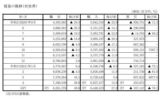 1.2021年5月度の貿易統計の概要