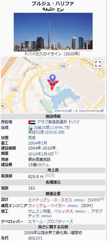 世界で最も高い建造物ブルジュ・ハリーファ:WIKIPEDIA
