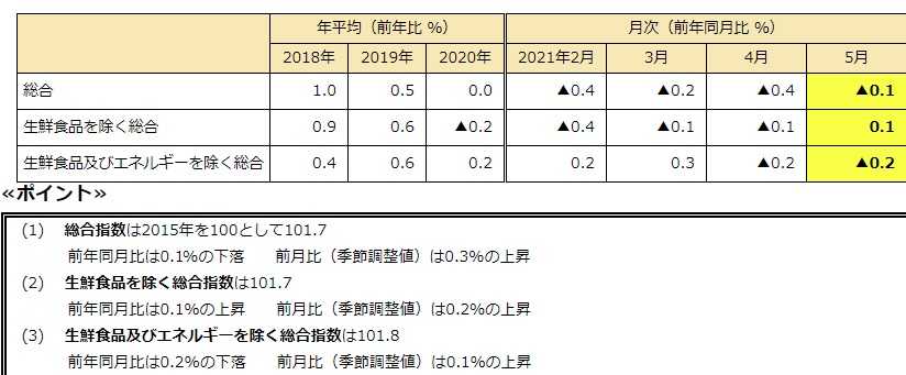 総務省のCPIが公表された。