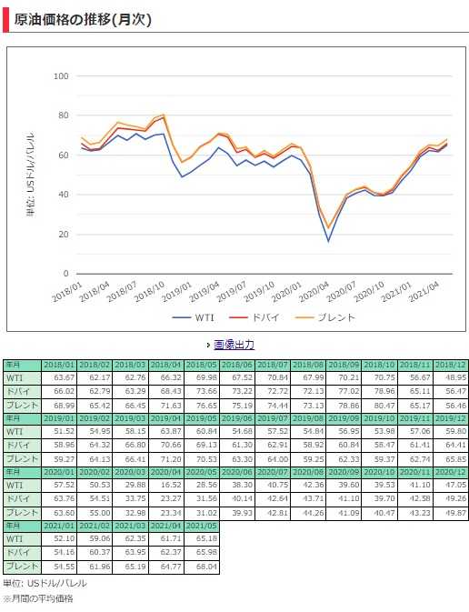 2021年5月度には65.18ドル/バレルに戻っていることと