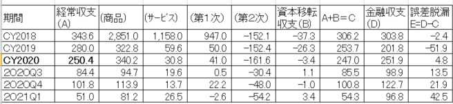2020年の経常収支は「2,740億ドル」(2018年241億ドル、