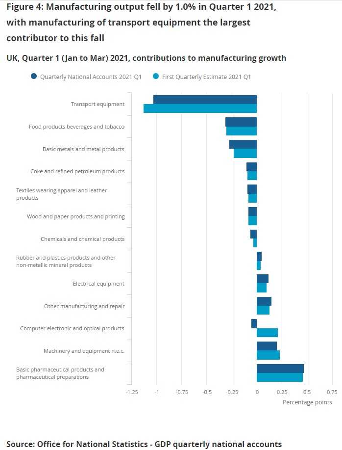 2021年Q1の製造業部門GDPの▲1.0%下落への