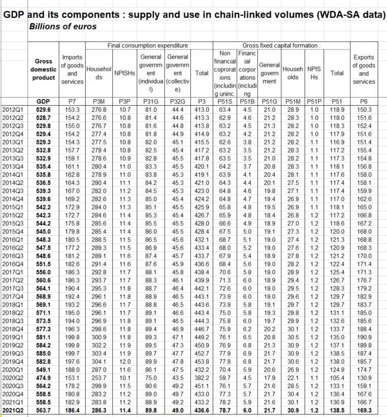 <実質四半期GDP推移の抜粋:単位=百万€、